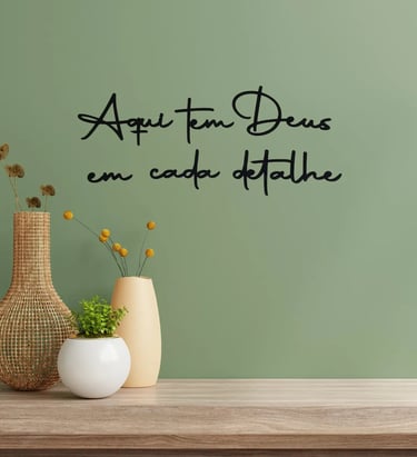 Transforme seu ambiente com a frase decorativa “Aqui tem DEUS em cada detalhe”, perfeita para quem deseja unir fé, estilo e aconchego na decoração. Ideal para sala, quarto, escritório, hall de entrada ou cantinho de oração, essa peça moderna valoriza qualquer parede e traz um toque de paz ao lar. A tipografia elegante combina com vários estilos — minimalista, clean, escandinavo ou rústico. Uma opção encantadora para renovar seu espaço e deixar cada detalhe repleto de significado. Inspire sua casa com propósito e beleza.