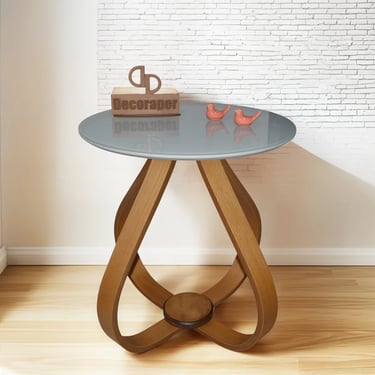 MESA LATERAL COM VIDRO PÉS CEBOLA DECORATIVA 50CM